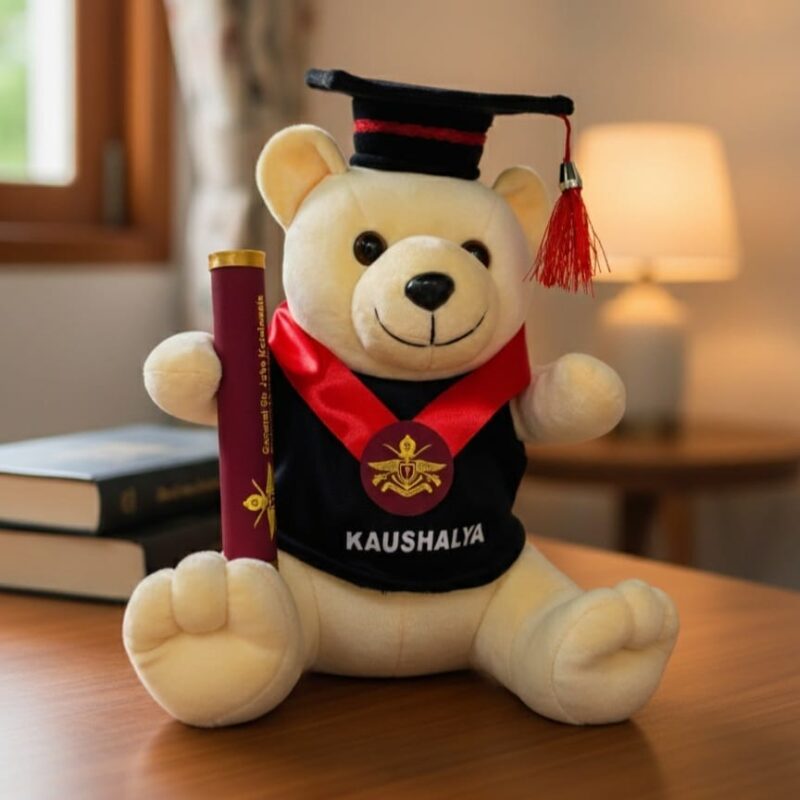 Crafted with high-quality, ultra-soft plush material, the Monarch Bear Graduation Teddy is safe, durable, and built for cuddles. Standing at 26cm, it’s the perfect size – not too big, not too small. It can be placed on a study desk, displayed on a shelf, or kept close as a comforting reminder of the proud graduation moment. The stitching is durable and secure, ensuring that the bear remains in perfect condition even after years of love and hugs.